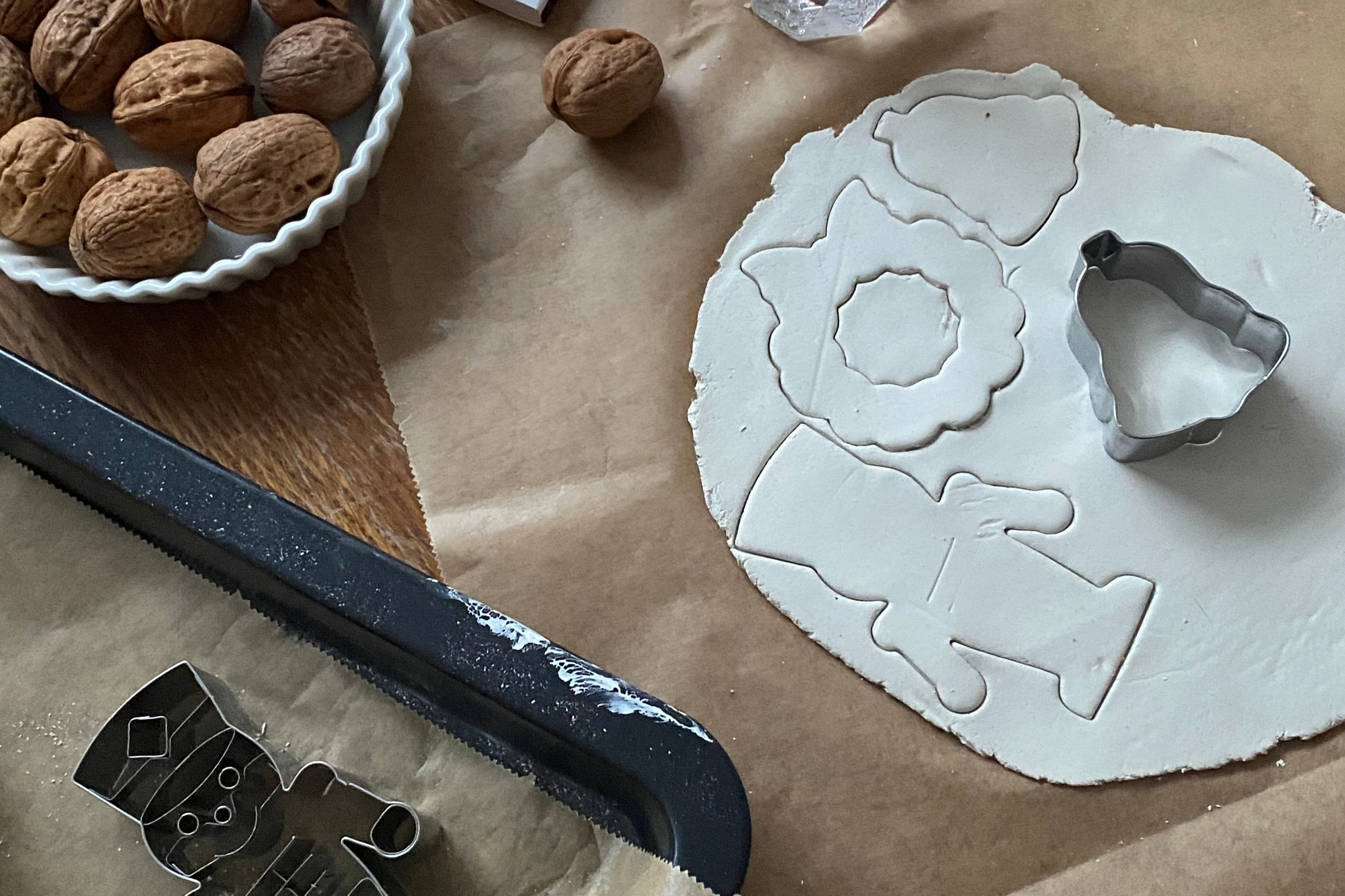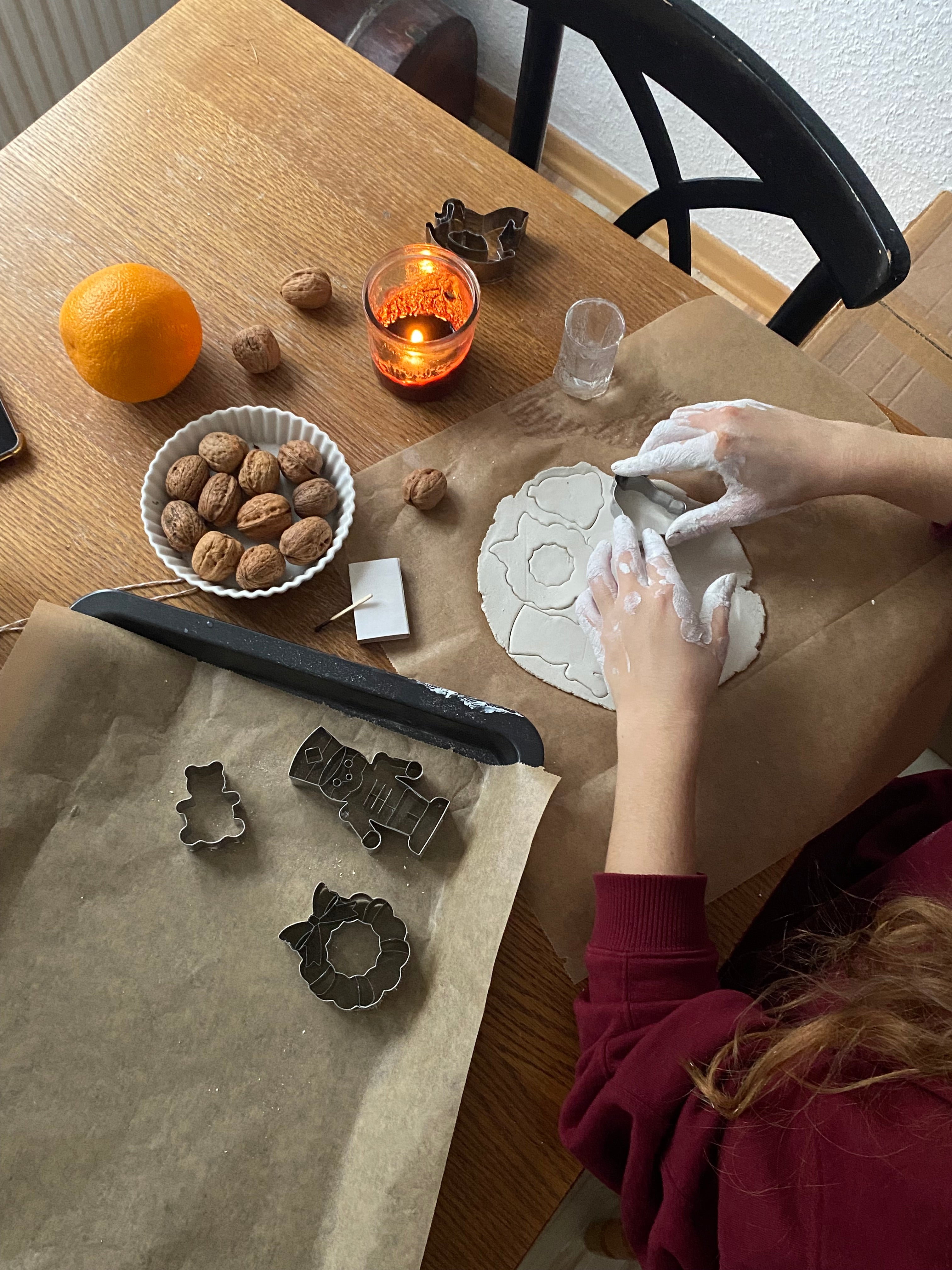 - Formen ausstechen: Verwende am besten Ausstechformen für weihnachtliche Motive oder einfach was dir am besten gefällt :) (das kann man als Geschenk auch schön an die jeweilige Person anpassen)